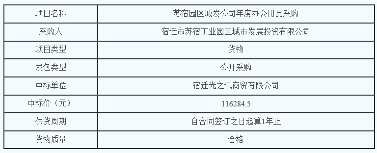 蘇宿園區(qū)城發(fā)公司年度辦公用品采購的中標公告