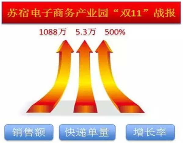 2016“雙11”蘇宿電子商務(wù)產(chǎn)業(yè)園上下一心,齊心協(xié)力迎戰(zhàn)一年一度的銷售盛典,最終在電商園管理辦公室與電商園眾多商家的一同努力之下,本次雙十一歡樂慶典取得優(yōu)異戰(zhàn)果:網(wǎng)絡(luò)銷售額達(dá)1088萬(wàn)元,快遞單量5.3萬(wàn)單,網(wǎng)絡(luò)銷售額較去年同期增長(zhǎng)500%。
