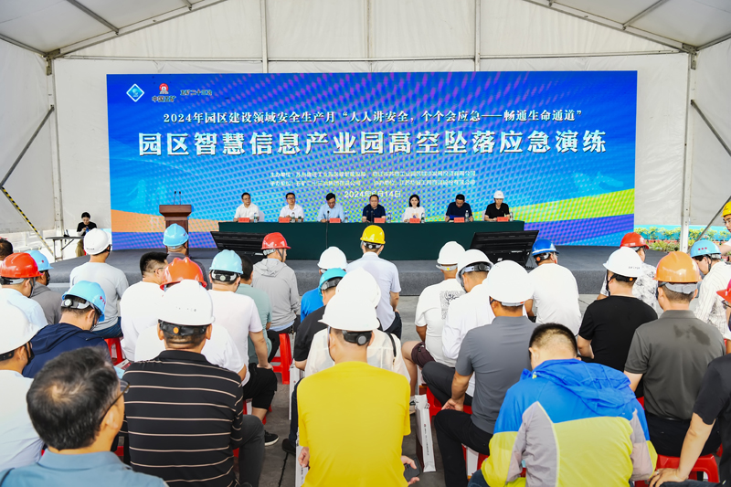今年6月是第23個全國“安全生產月”,主題是“人人講安全、個個會應急——暢通生命通道”。 為貫徹落實《園區(qū)安委辦關于開展2024年園區(qū)“安全生產月”活動的通知》要求,6月14日,在規(guī)劃建設局組織下,城發(fā)公司會同園區(qū)智慧信息產業(yè)園各參建方,在項目現(xiàn)場舉行2024年園區(qū)建設領域安全生產月高空墜落應急演練活動。園區(qū)黨工委委員、管委會副主任、規(guī)劃建設局局長陳宏根,規(guī)劃建設局副局長劉美霞,城發(fā)公司總經理助理張驥,園區(qū)在建項目建設單位、施工總承包、監(jiān)理等100余名人員共同參與。