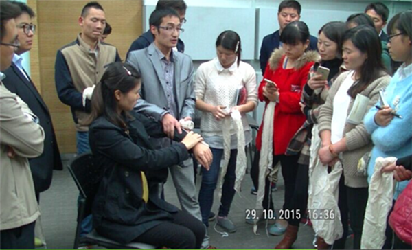 理論課上,講師們?cè)敿?xì)生動(dòng)地介紹了應(yīng)急救護(hù)的基本知識(shí),講述止血、包扎、固定和搬運(yùn)等四方面內(nèi)容。實(shí)訓(xùn)課上,參訓(xùn)者饒有興致地進(jìn)行一對(duì)一實(shí)際操作,講師們現(xiàn)場(chǎng)進(jìn)行指點(diǎn)。