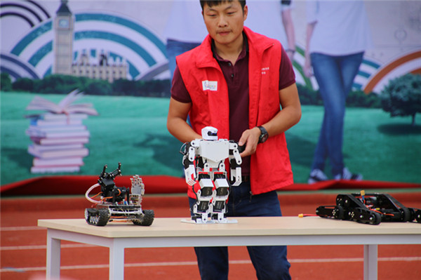 表演中,兩臺(tái)多軸飛機(jī)在場(chǎng)地作繞場(chǎng)及8字飛行,在飛行4分鐘后,隨著背景的高潮音樂(lè)響起,在空中打開(kāi)了橫幅——“共創(chuàng)文明社區(qū),締造幸福家園?!彪S后,無(wú)論是機(jī)器人的介紹演示、固定翼無(wú)人機(jī)的拉煙表演還是直升機(jī)表演,又或是像真機(jī)空中格斗飛行,都讓同學(xué)們?cè)诨?dòng)和操作中充分感受到了科技的飛速發(fā)展,拓展了視野,更對(duì)航空模型制作產(chǎn)生了濃厚的興趣。
